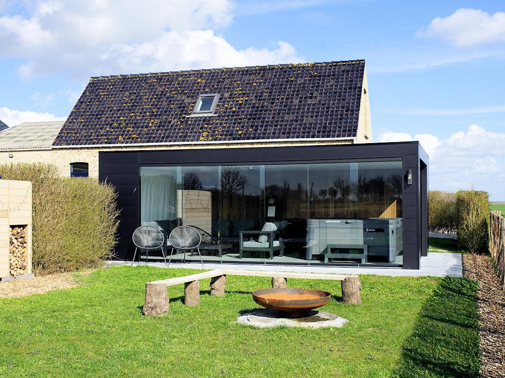 Na een leuke dag kan je genieten van een glaasje cava in de zalige jacuzzi, de overdekte lounge of gewoon gezellig rond de vuurschaal met een prachtig zicht op het Eversambos.